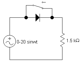 Şekildeki devrede e(t) genliği 0V ile 20V arasında değişen bir sinus dalgasıdır. Aplette diyodun ideal bir diyot olmaması durumunda ortaya çıkan dalga şekline dikkat edin. Diyot, üzerindeki gerilim 0.7V'un üzerine çıkana değin kesimde kalmaktadır.
