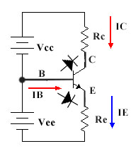 NPN tranzistörün baz bölgesi potansiyel bakımdan emetör bölgesinden aşağı olursa yani B-E arasındaki potansiyel fark negatifse tranzistör ters kutuplanmış olur ve iletime geçmez. Benzer şekilde PNP tranzistörün B-E arasındaki potansiyel fark pozitifse tranzistör ters kutuplanmış olur. |