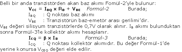 Tranzistörler temelde akım yükseltme işlemi yapar. Bu durumda gerilim ve güç yükseltme işlemi de sağlanmış olur. Tranzistörlü bir yükseltme işleminde giriş sinyalinin ne kadar yükseltileceğini belirlemek için DC çalışma noktası değerlerinin hesaplanması gerekir. Bu noktadaki akım ve gerilim değerlerine Quescient (Q-kveskınt diye okunur) değerler denir.