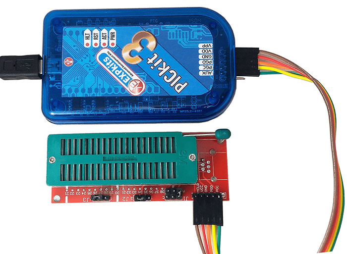 Mikrodenetleyiciye Program YüklenmesiMikrodenetleyiciye program yüklenmesi için kullanılan çeşitli programlayıcı kartları vardır. Artık günümüzde yaygın olarak USB 2.0 ya da 3.0 arabirim desteğine sahip programlayıcılar kullanılmaktadır. PICkit2 ya da PICkit3 ve en yeni versiyon PICkit4 programlayıcı Microchip firmasınca geliştirilmiş donanımlardır. 12 bit komut uzunluğuna sahip 8 bitlik PIC10 ve PIC12, 14 bit komut uzunluğuna sahip 8 bitlik PIC16, 16 bit komut uzunluğuna sahip 8 bitlik PIC17 ve PIC18, 24 bit komut uzunluğuna sahip 16 bitlik PIC24 ve dsPIC (dijital sinyal işleme özellikli) mikrodenetleyicilerini programlayabilirler.