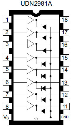 ![]() Şekil-6.2 UDN2981A entegre devresinin pinleri
