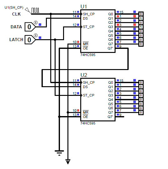 ![]() Şekil-6.4 Kaskad bağlı 74HC595'lerin çalışma ilkesi