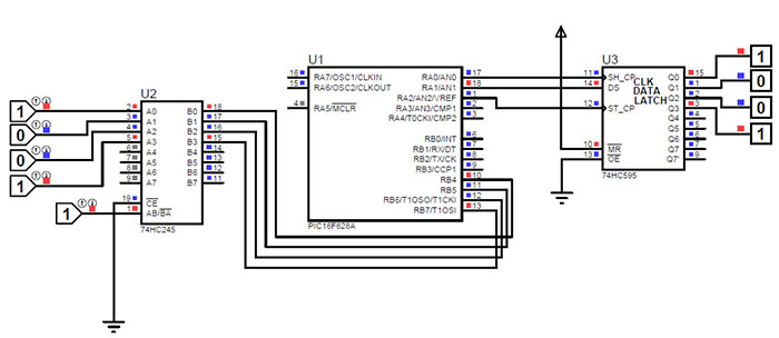 Uygulamada mikrodenetleyicinin RA0 portu Darbe (Clock), RA1 portu Veri (Data) ve RA2 portu Tutma (Latch) çıkışları olarak kullanılmıştır. 74HC245 alıcı/verici entegresinin 1 numaralı Yön Kontrol (Direction Control - DIR) pini lojik-1 olduğu müddetçe B portunun RB4-7 pinlerinden birinde gerçekleşecek değişim 74HC595 entegresine aktarılmaktadır. Bu uygulamada verinin okunup seri olarak gönderilmesi ve tekrar paralel olarak çıkışta gösterilmesi tamamen yazılım yöntemiyle yapılmaktadır. Tablo 6.3 74HC595 kaydırmalı kaydedicisinin sürülmesi mikroC kodu