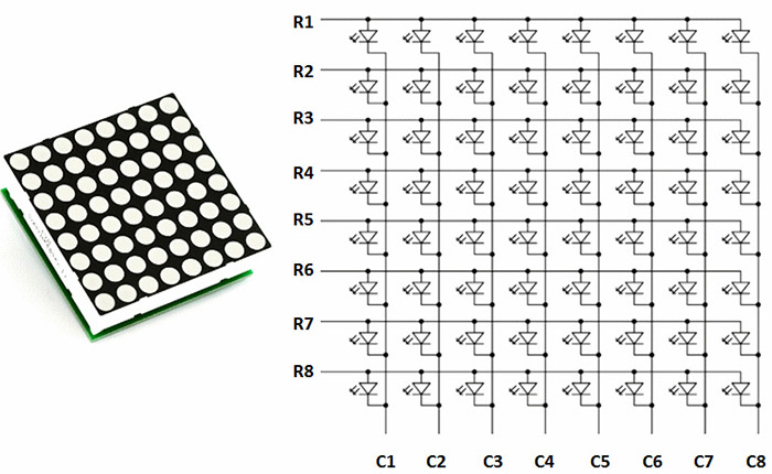 ![]() Şekil-6.6 8x8 Nokta matris iç yapısı