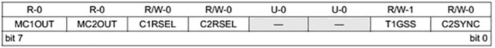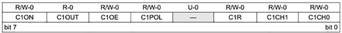 CM1CON0 ve CM2CON0 kaydedicileri ortak olarak aşağıdaki kontrol ve durum bitlerine sahiptir: