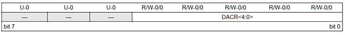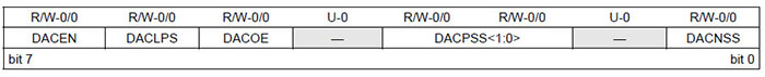 0 = DAC voltaj seviyesi DACOUT pininden yalıtılır. DACCON1: DİJİTAL ANALOG DÖNÜŞTÜRÜCÜ KONTROL KAYDEDİCİSİ 1 (ADRES: 199h – PIC12F1840)
