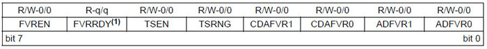 FVRCON: SABİT VOLTAJ REFERANSI KONTROL KAYDEDİCİSİ (ADRES: 197h – PIC12F1840)