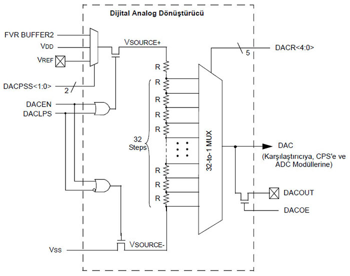 ![]() Şekil 7.22 DAC modülü blok diyagramı
