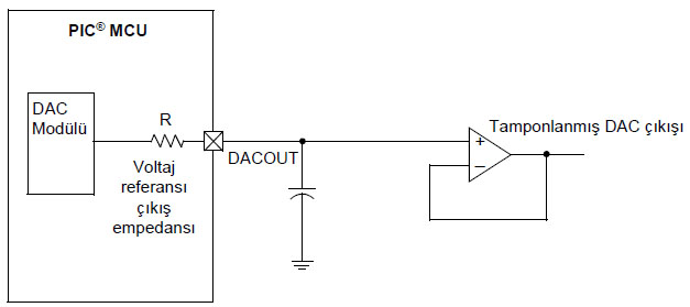 ![]() Şekil 7.23 DACOUT pinine tampon devresinin bağlanması