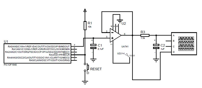 ![]() Şekil 7.24 PIC12F1840 ile DAC uygulaması