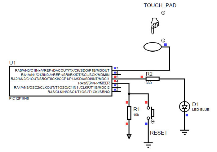 ![]() Şekil 7.29 PIC12F1840 ile kapasitif yakın mesafe algılama uygulaması