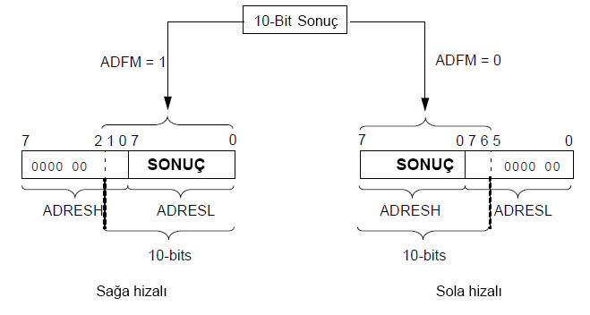 bit 7 ADFM: A/D sonuç formatını belirleme biti ![]() Şekil 7.3 ADFM bitinin bilgiyi hizalamada kullanımı